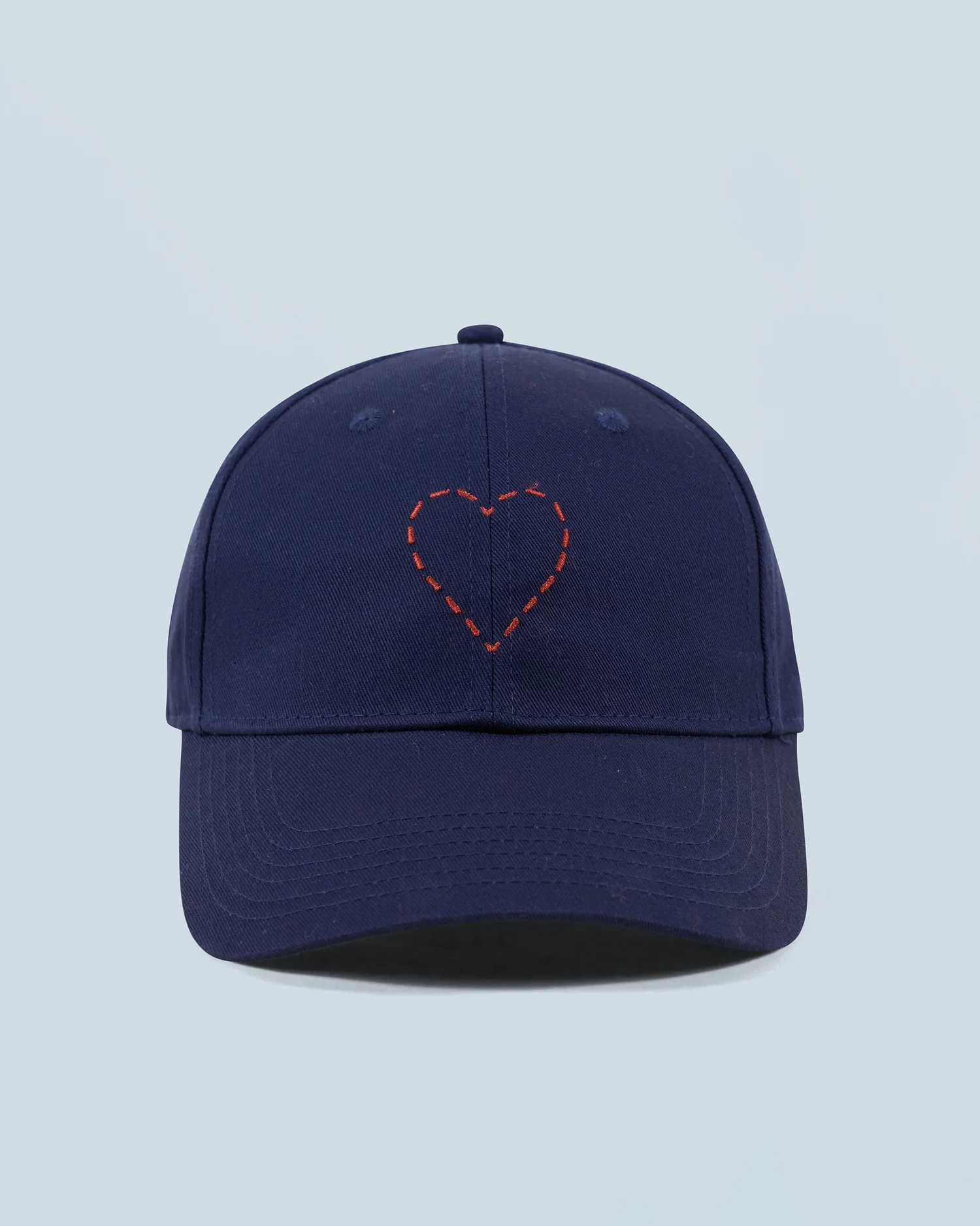 Ornée d’un cœur brodé et contrasté à l’avant, cette casquette en coton, munie d’une sangle ajustable est une véritable déclaration de style.