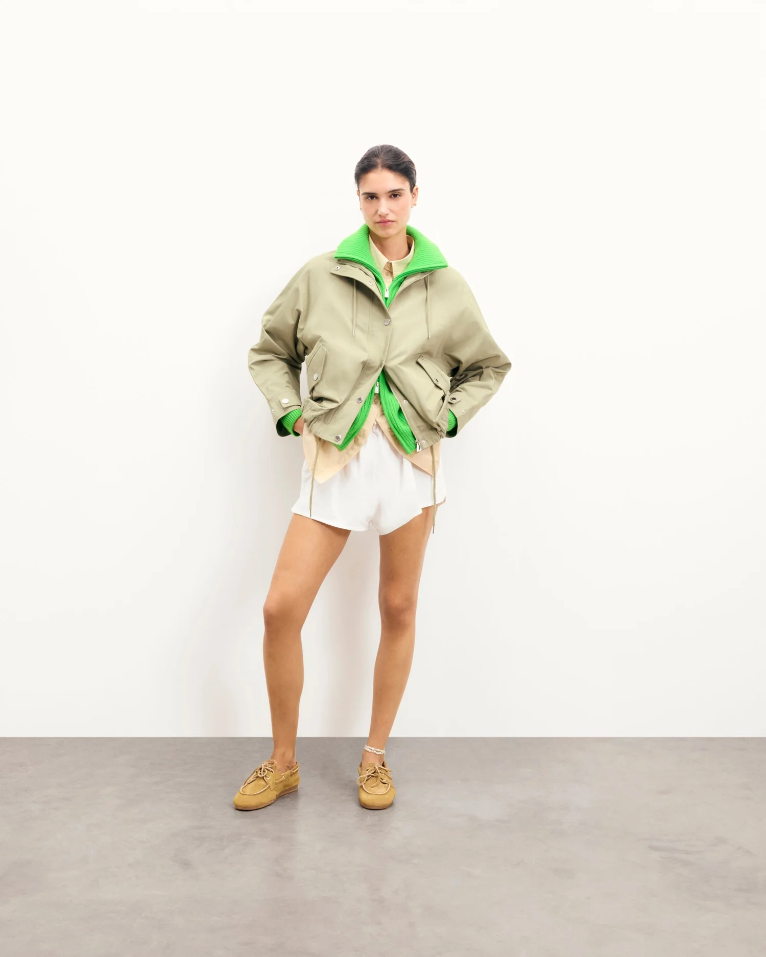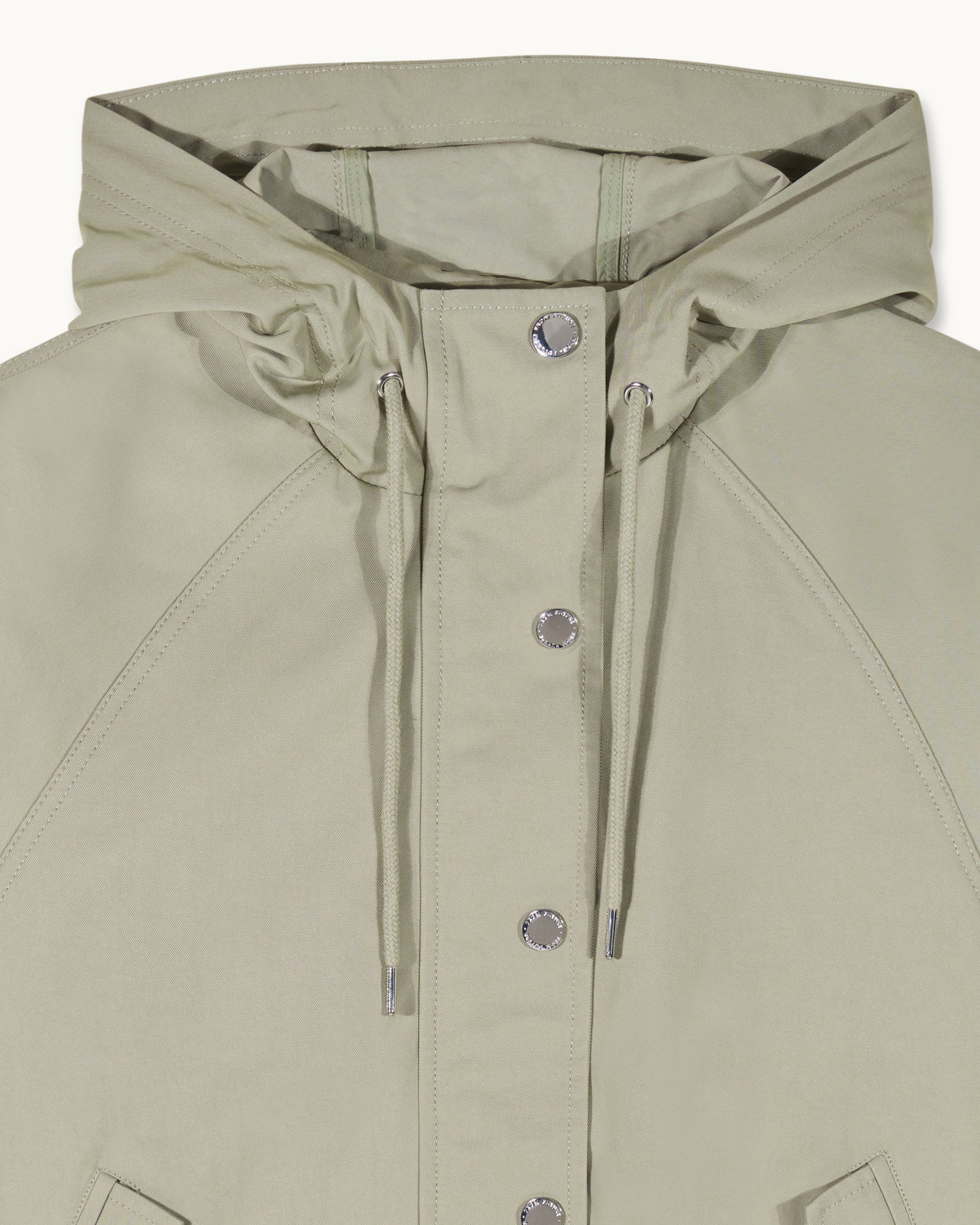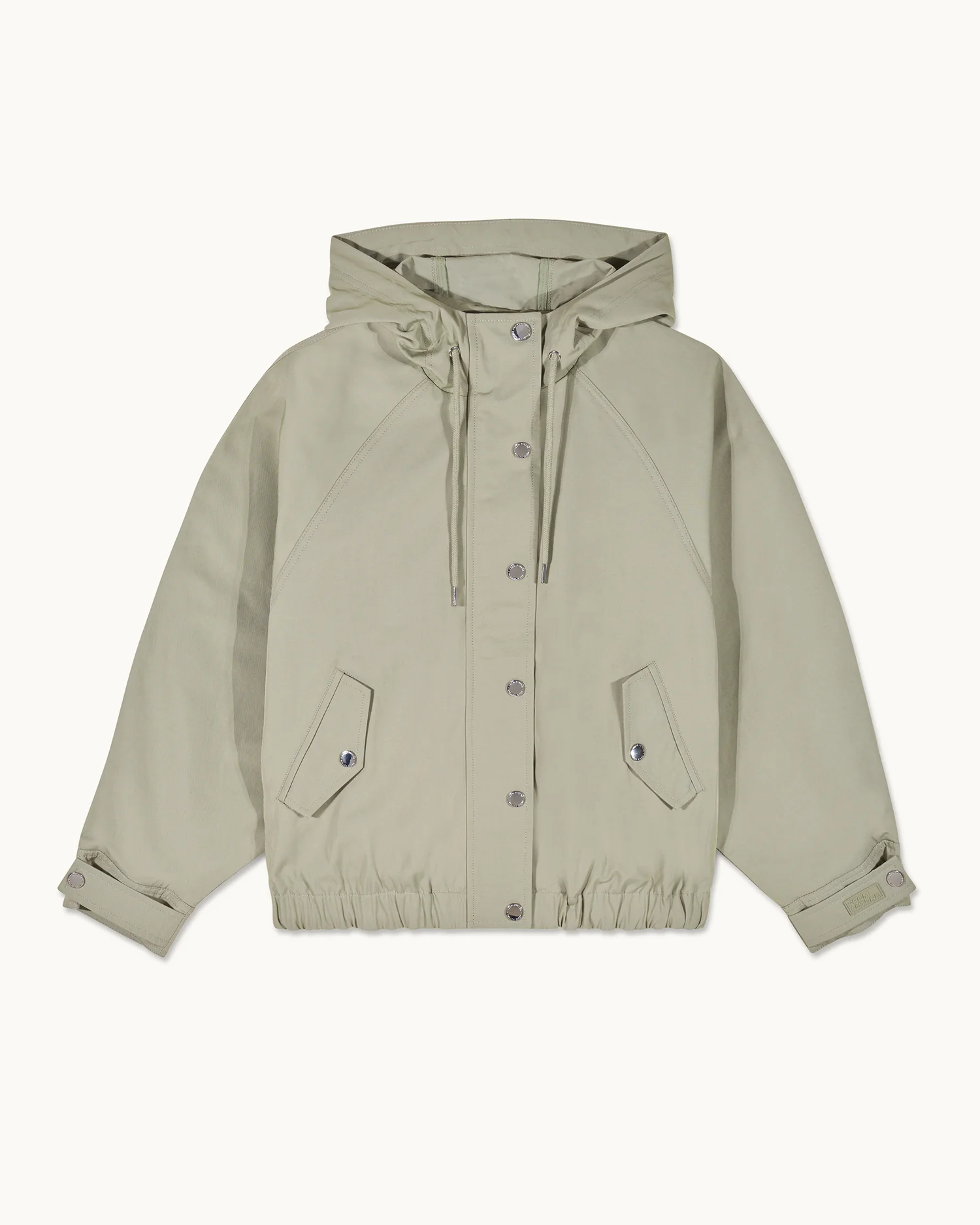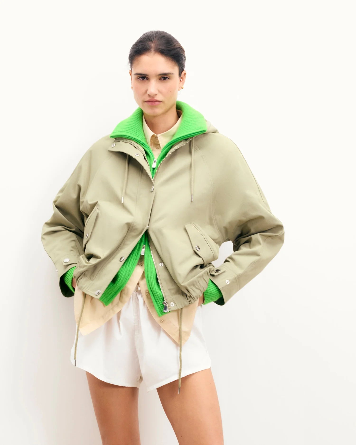 Pièce indispensable de la saison, cette veste à capuche offre une coupe ajustée avec un bas élastiqué. Ornée d’un patch signature, elle est munie d’une fermeture, deux poches à rabat et des poignets à boutons pression.