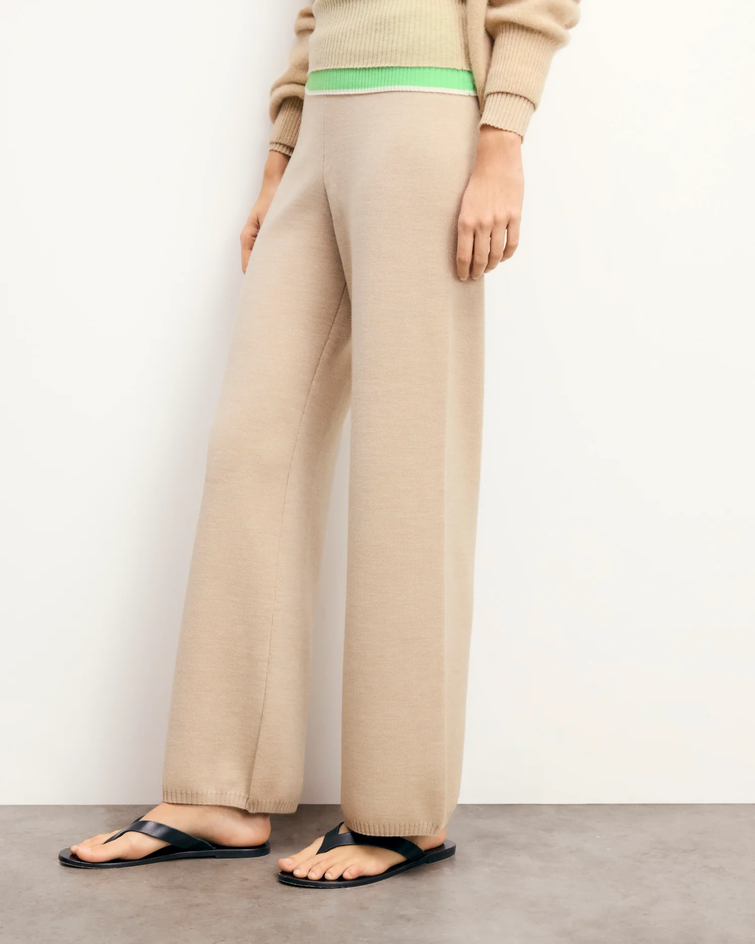 – Pantalon long et large en laine mérinos 4 fils Femme