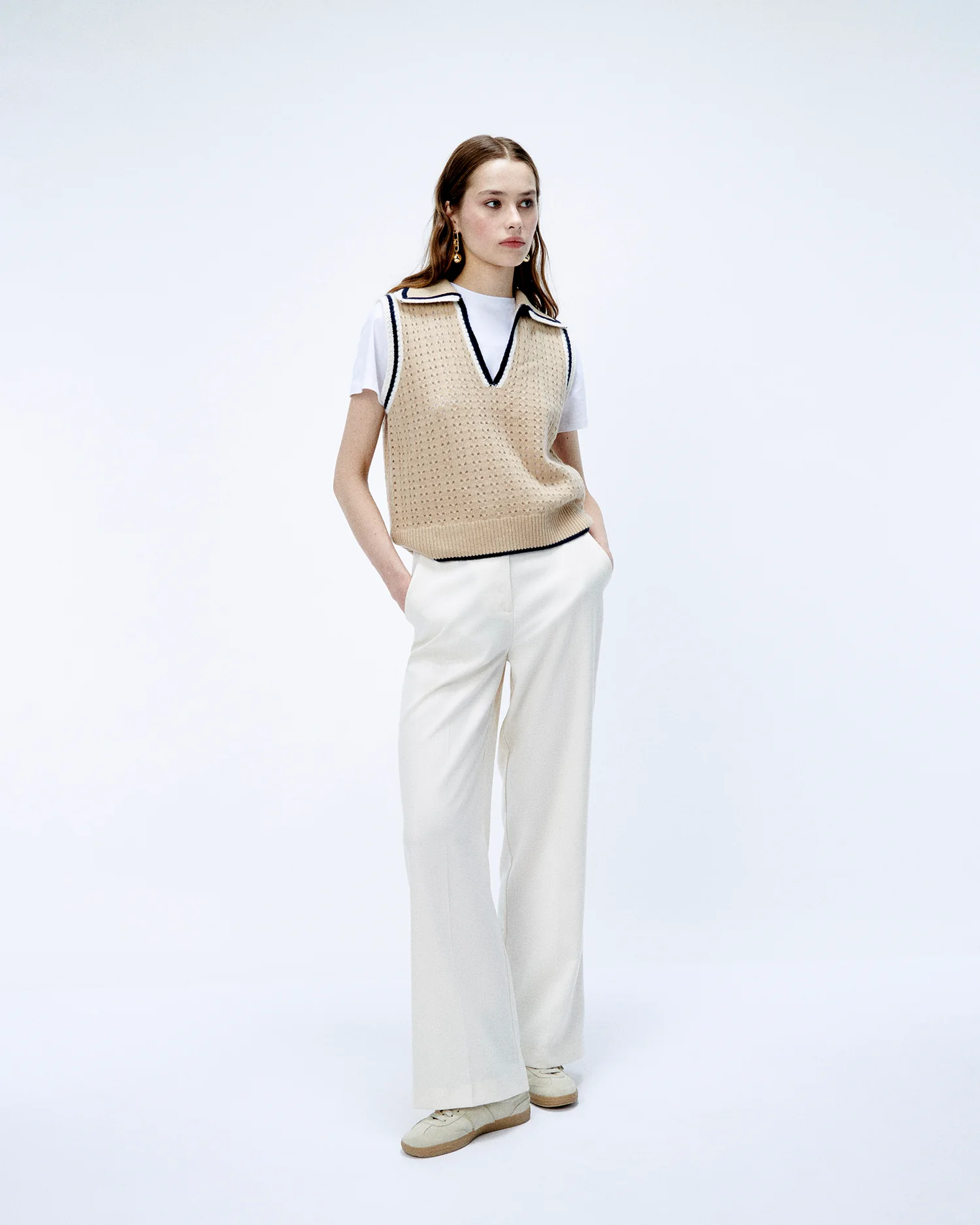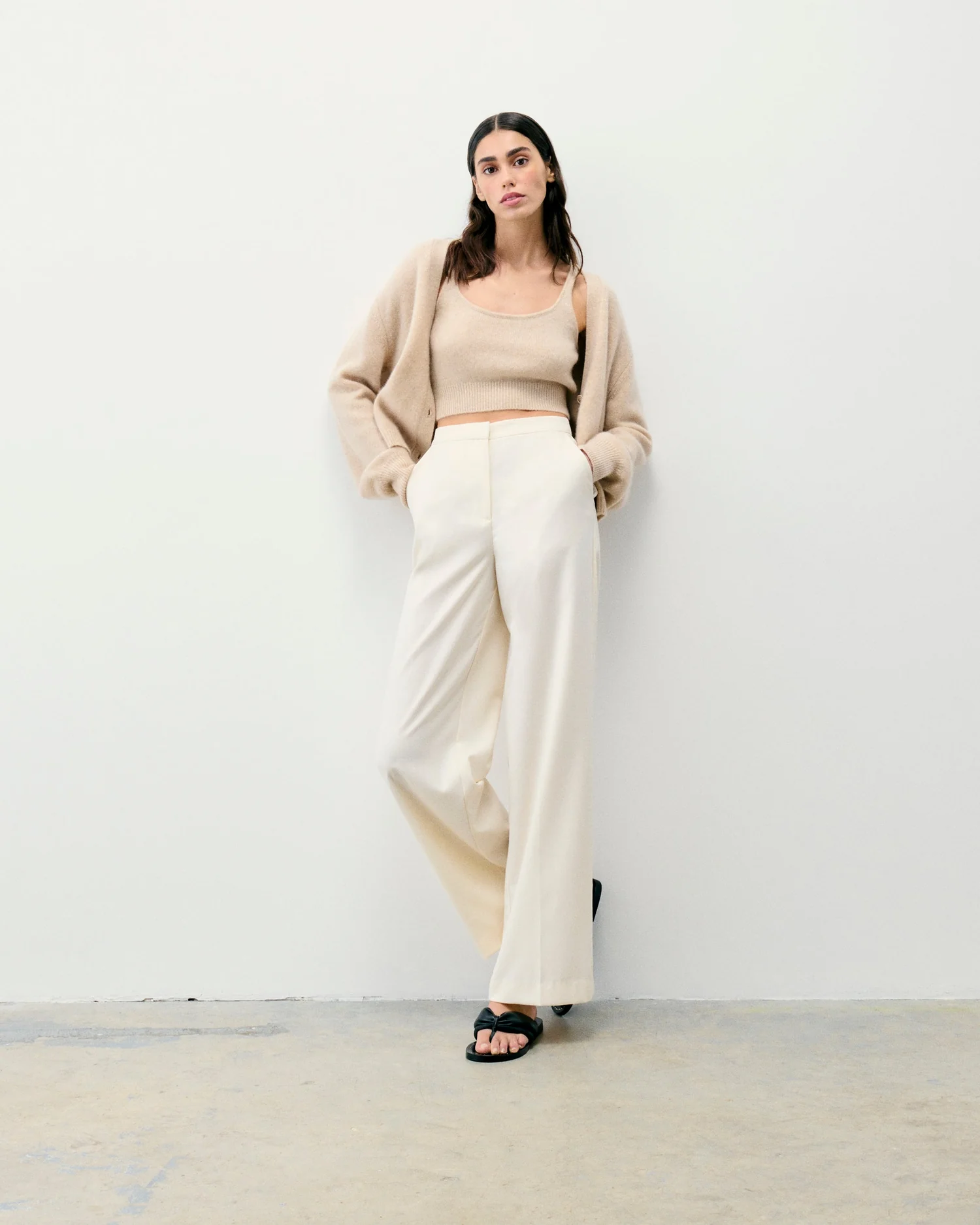 Élevez votre allure cosmique dans ce pantalon large et structuré. Muni d’une fermeture zippée, il dévoile des plis délicats et deux poches avant pour une silhouette sophistiquée. Facile à mixer, il s’associe à une chemise fluide et une veste droite.