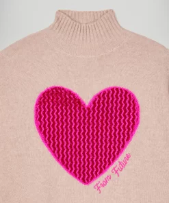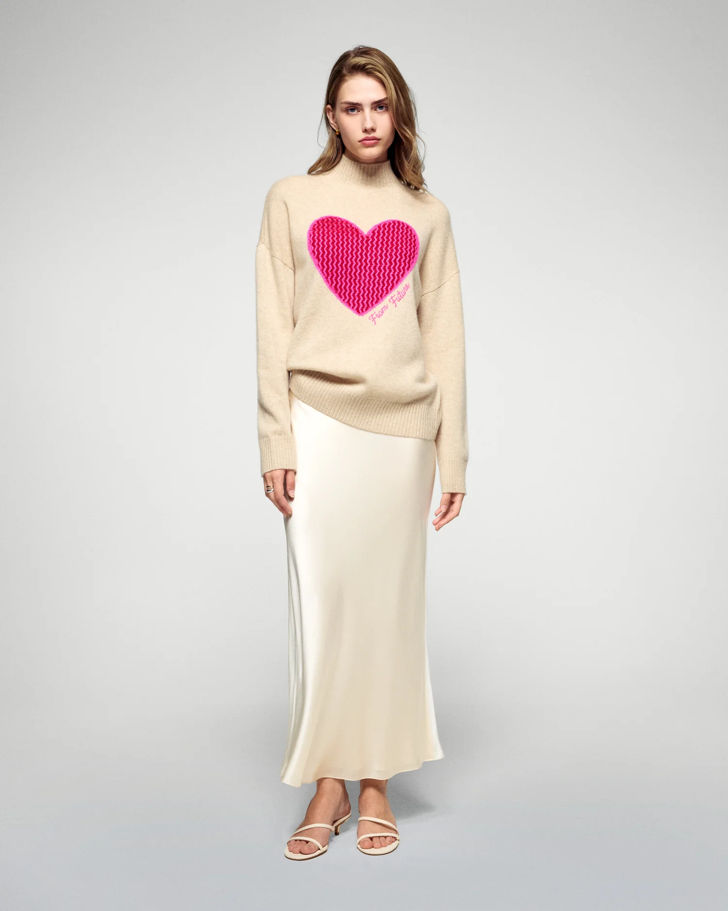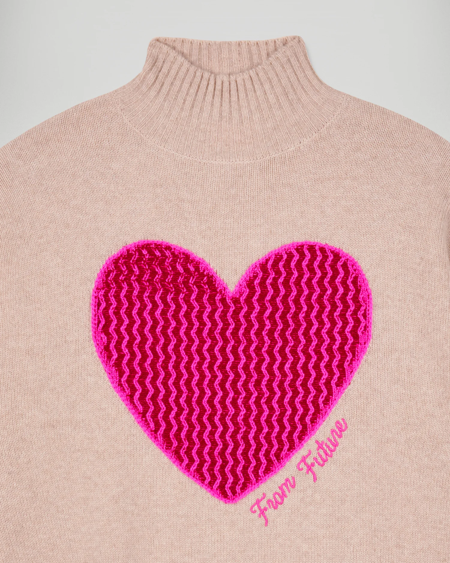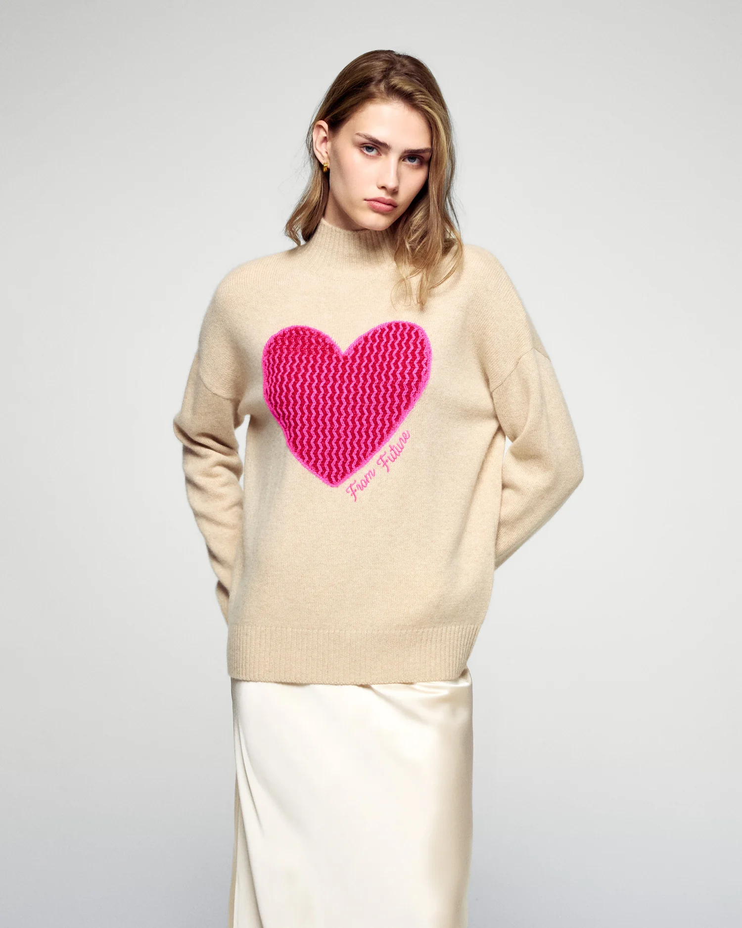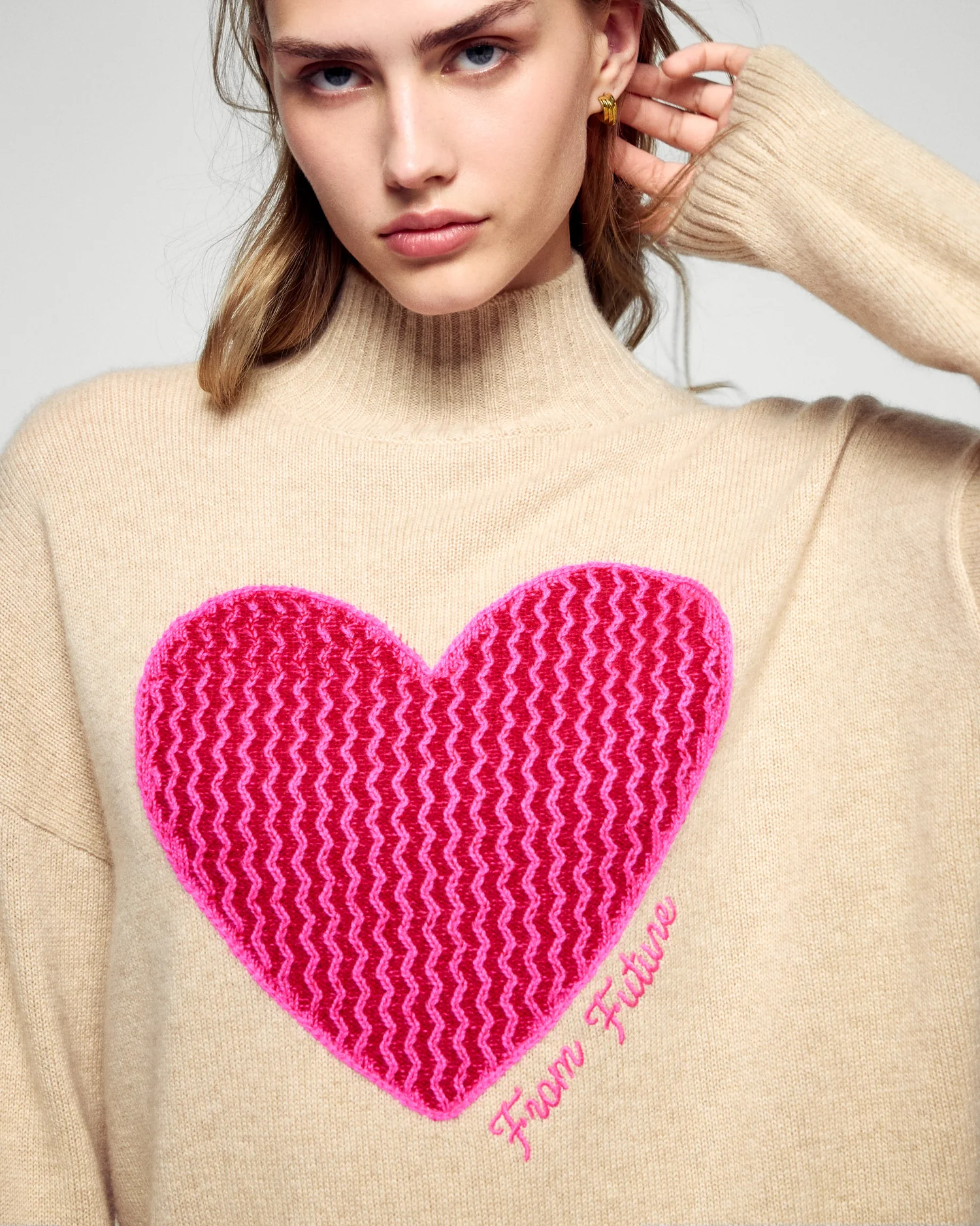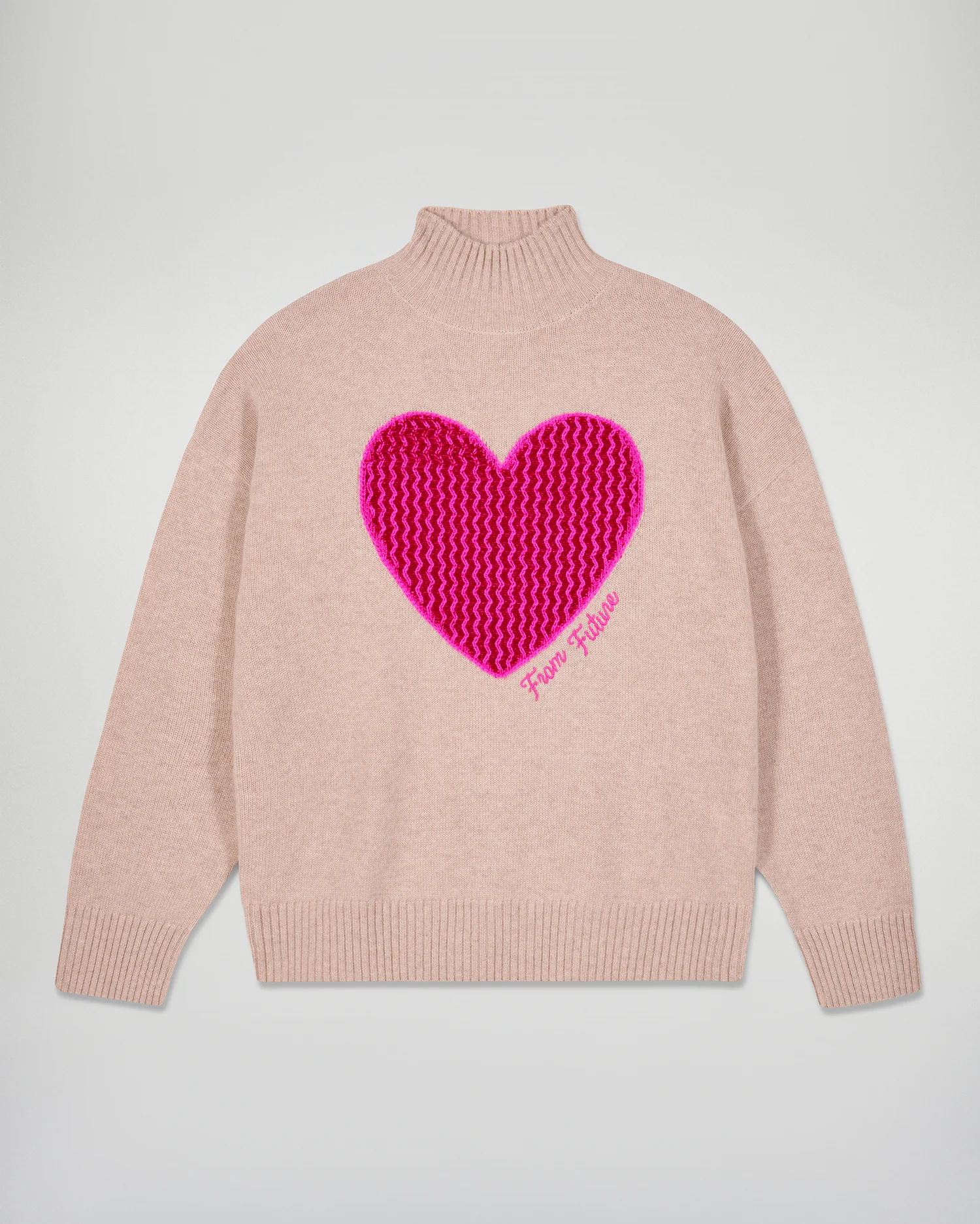 FROMFUTURE Pull Col Montant Cœur Beige Chiné | Femme Nouvelles Pièces