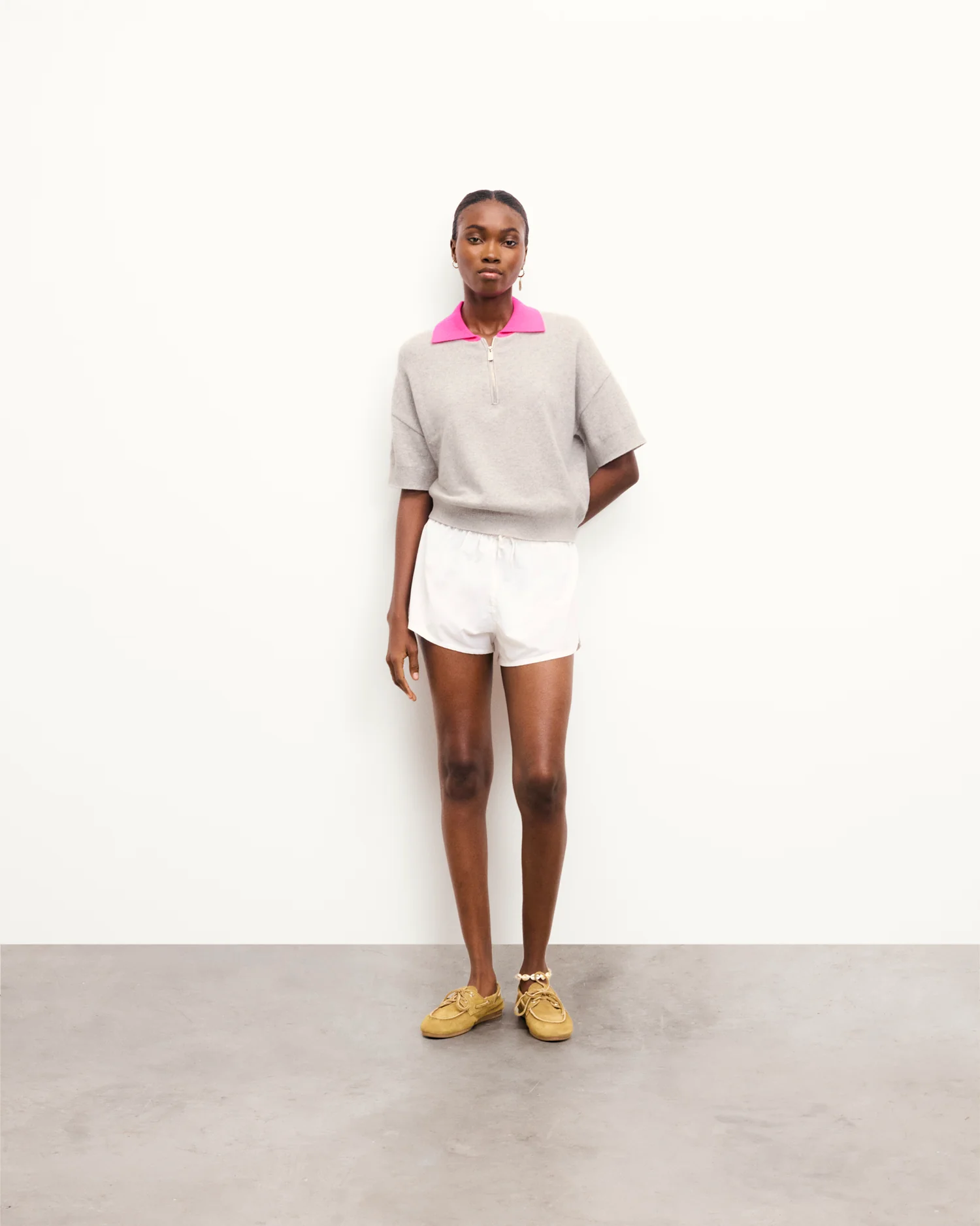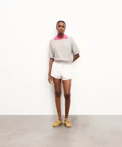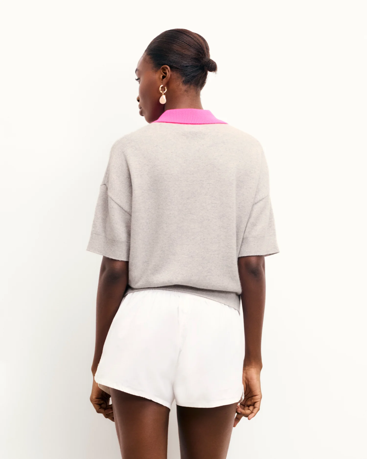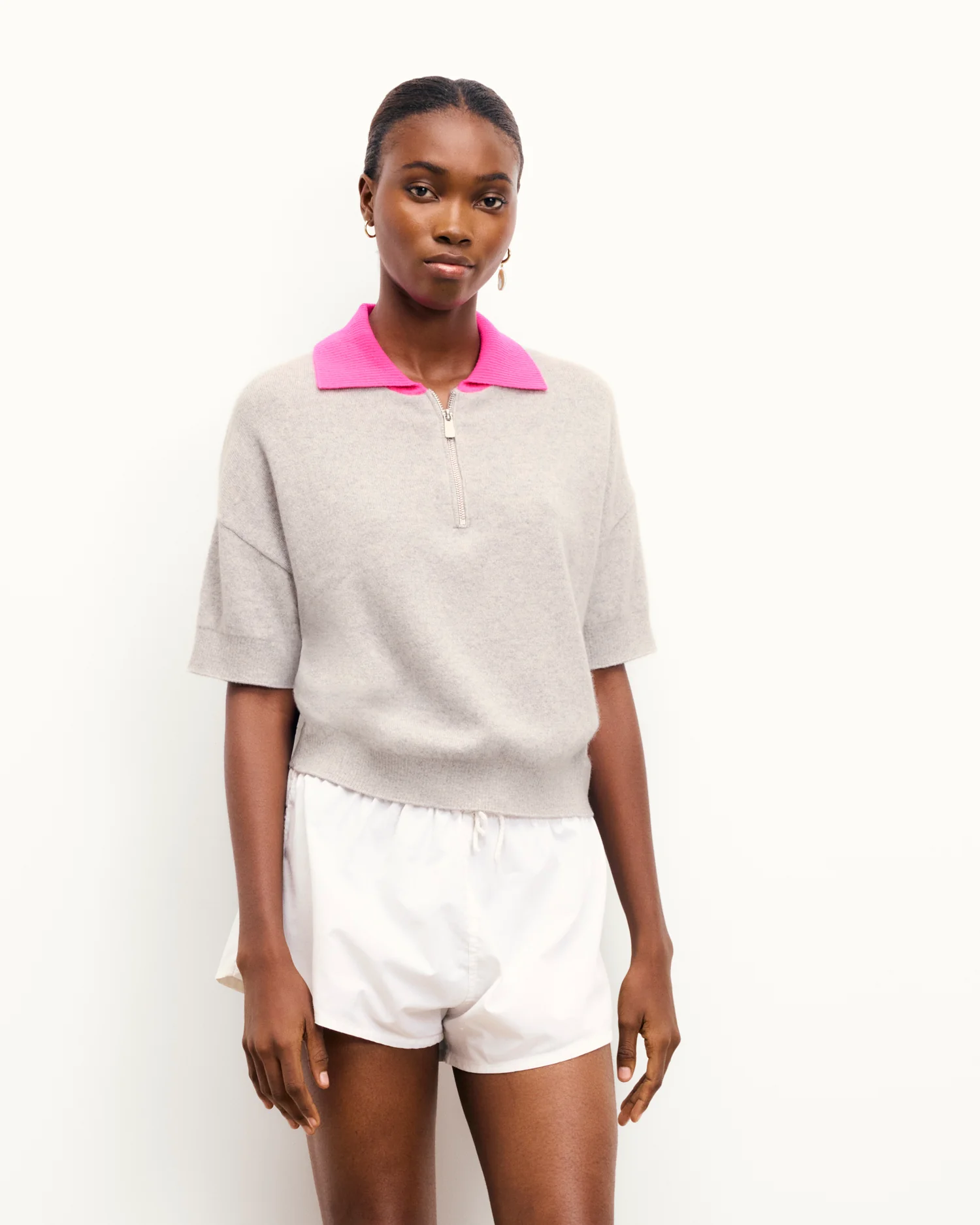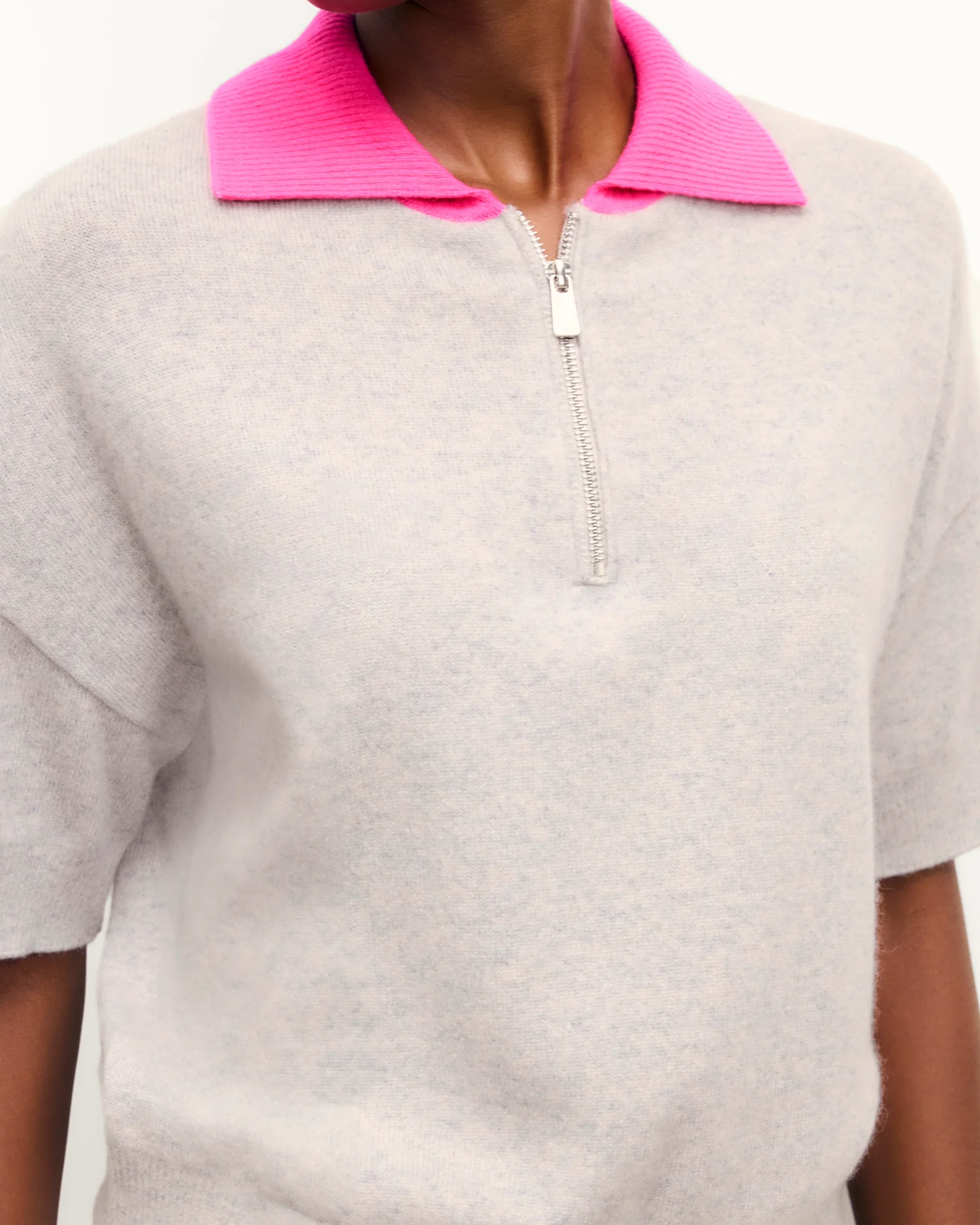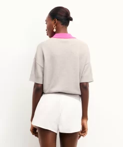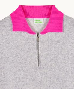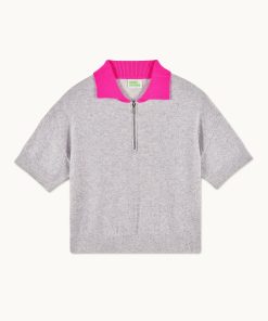 FROMFUTURE Pull Col Polo Manches Courtes Bicolore Gris Chiné Clair | Femme Pulls en cachemire
