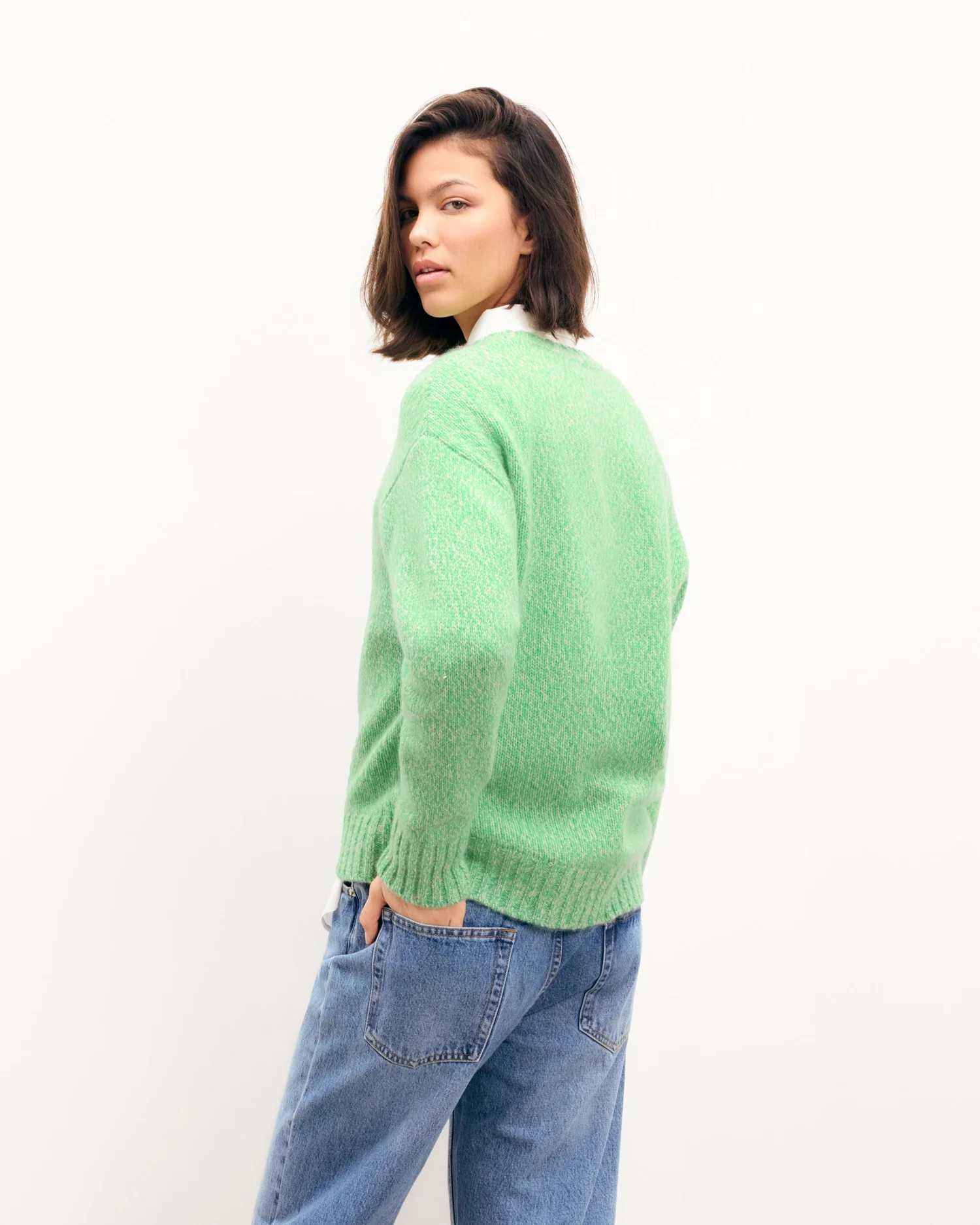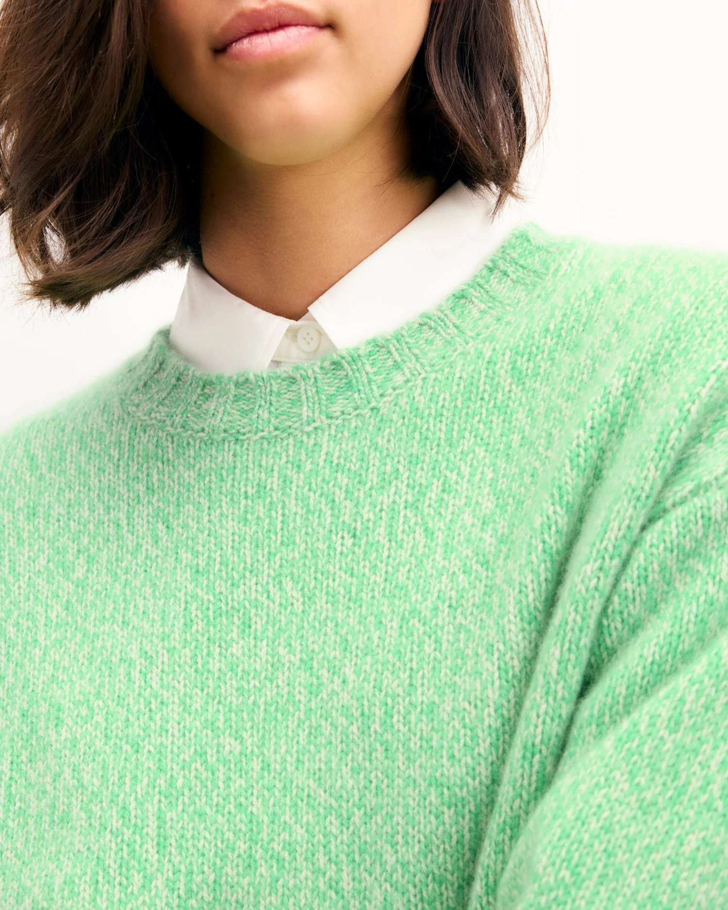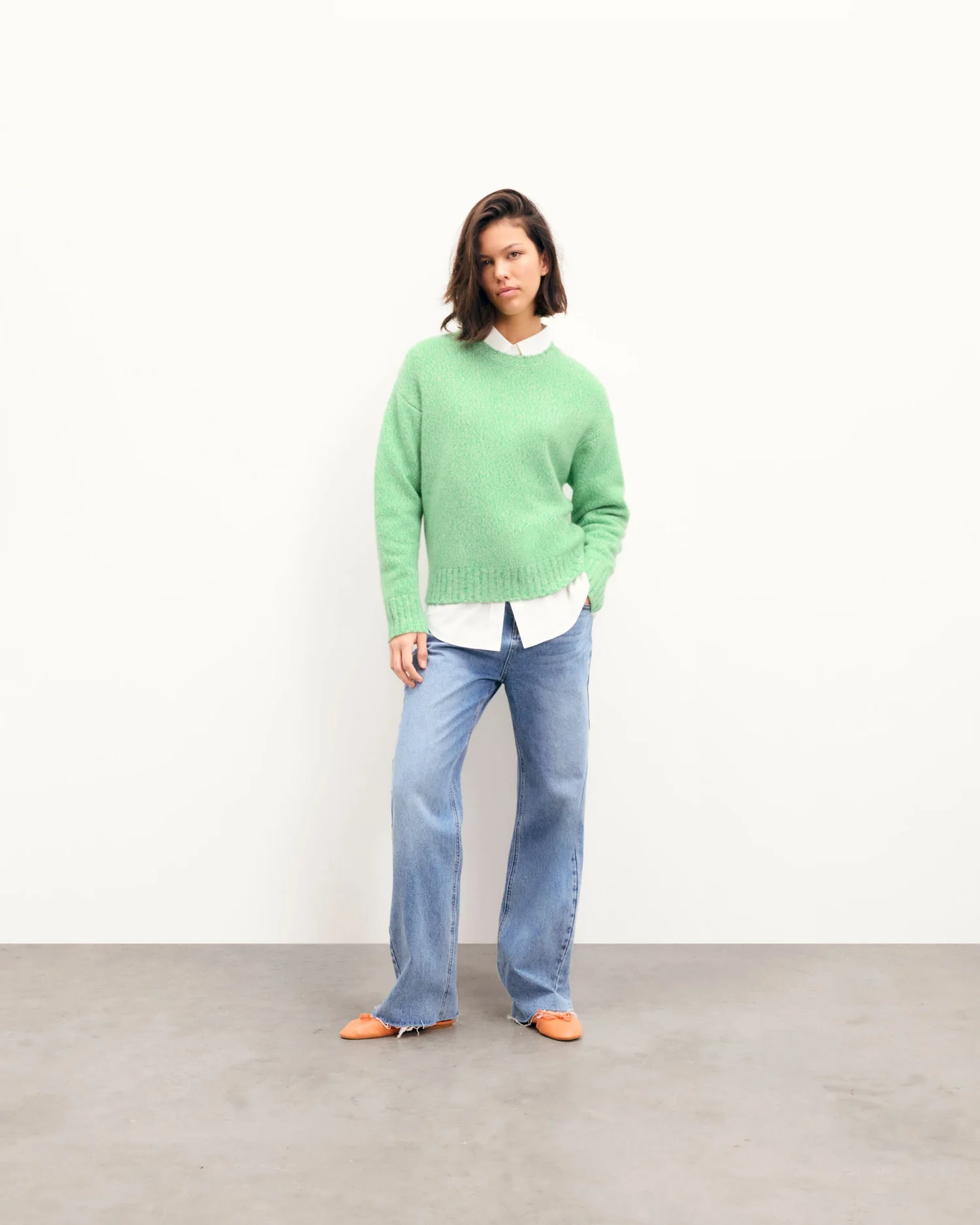 Ce pull se distingue par une maille moulinée confectionnée en cachemire 4 fils. Avec un col rond et des manches longues, il dévoile une coupe oversize décontractée. Complétez votre look avec un pantalon droit ou une jupe fluide.