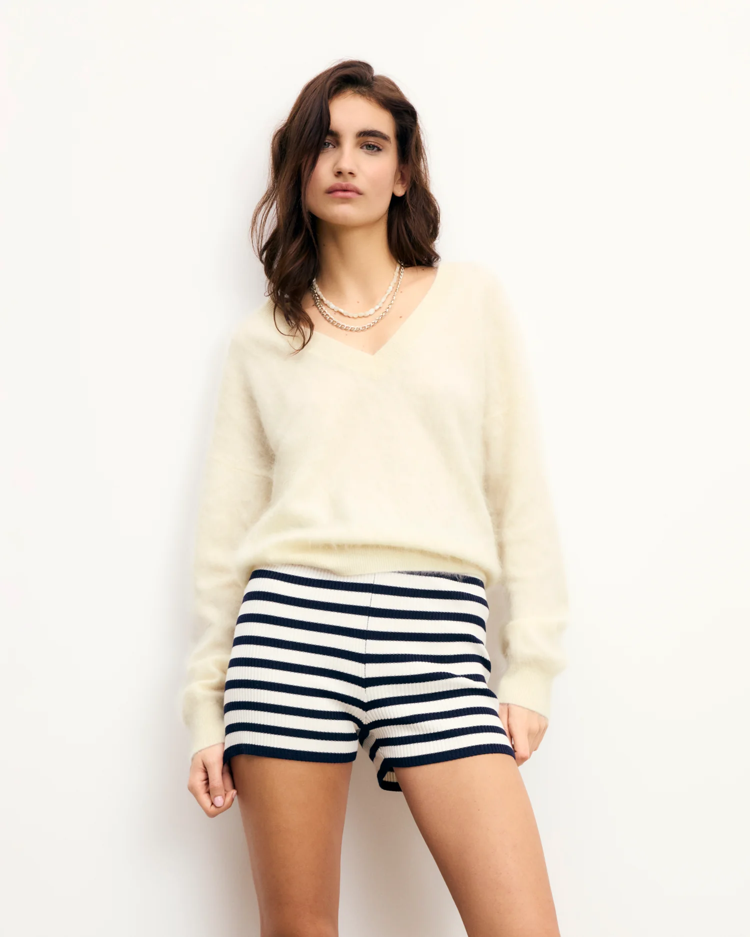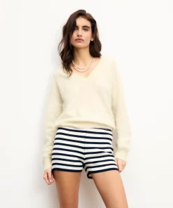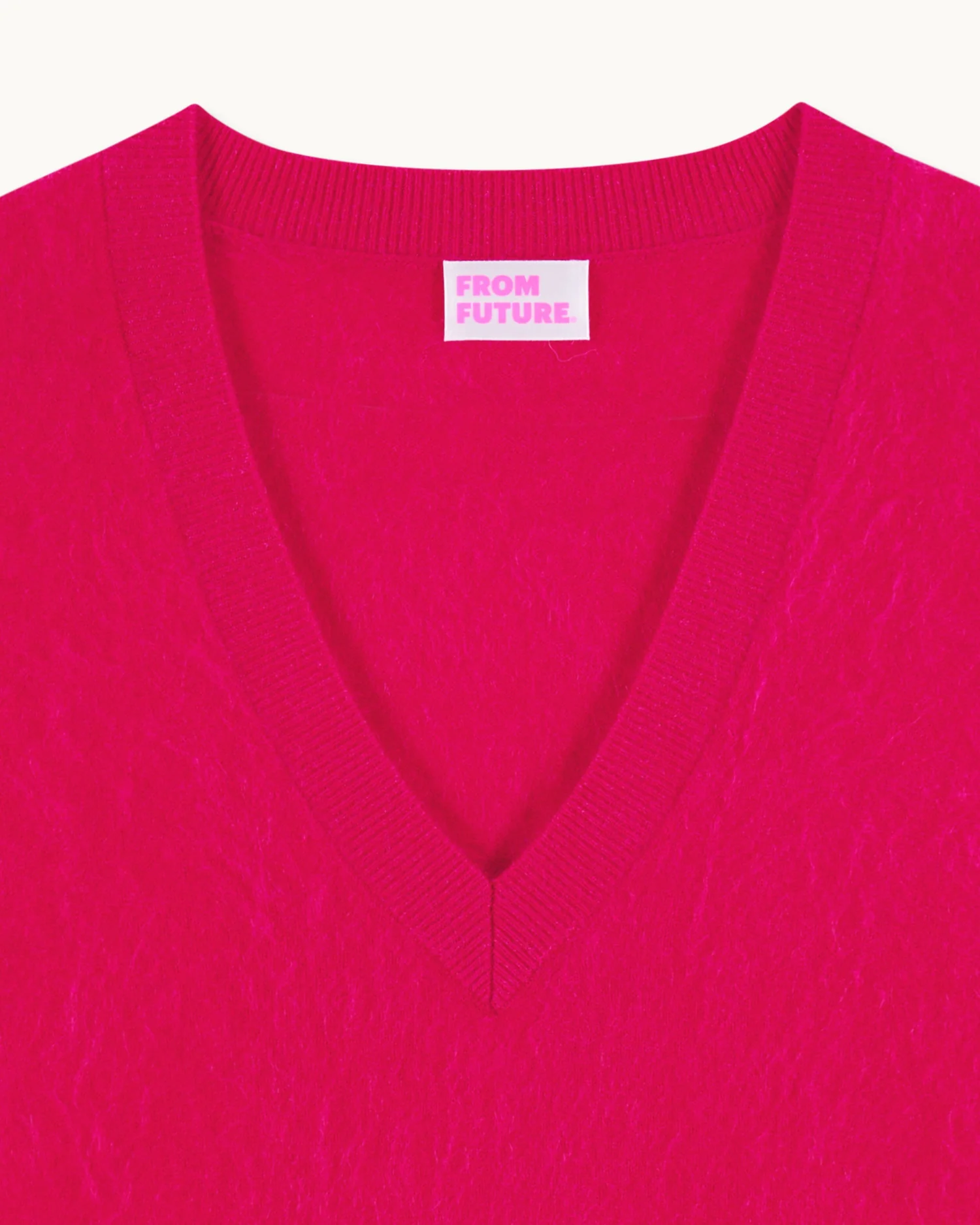 FROMFUTURE Pull Col V Cachemire Brossé Tropical Raspbe | Femme Pulls en cachemire