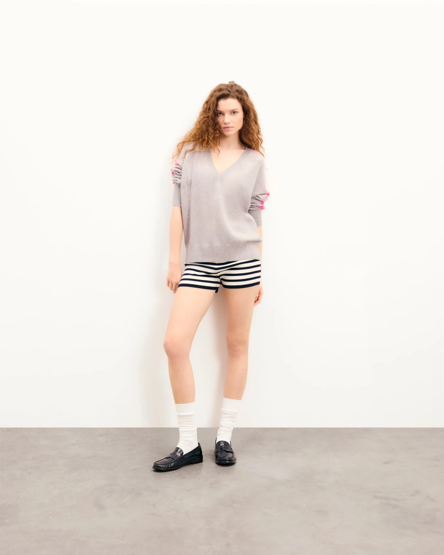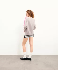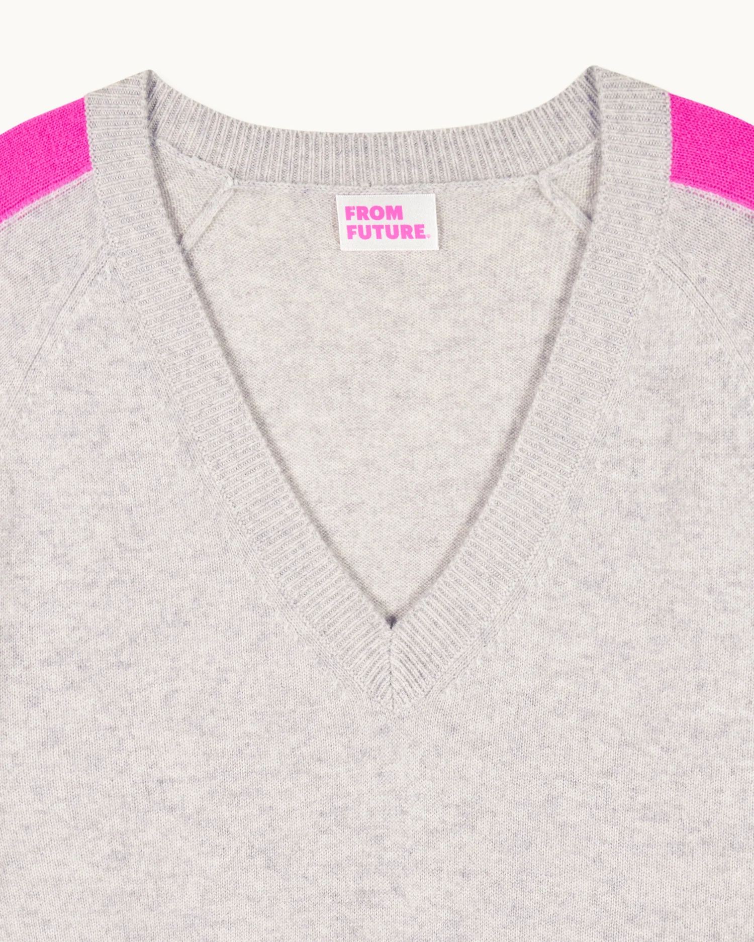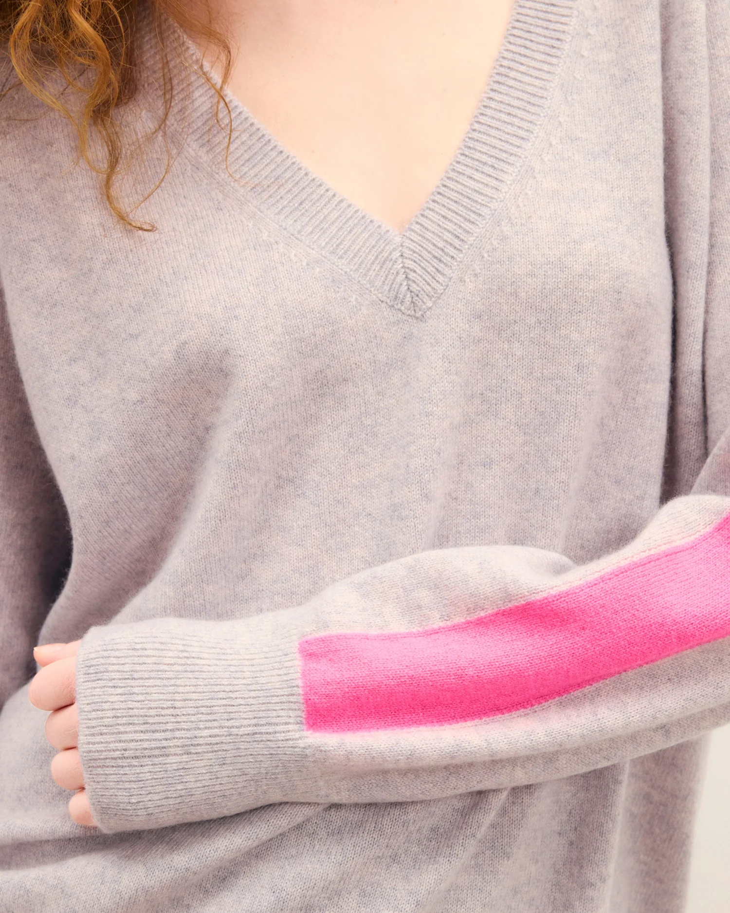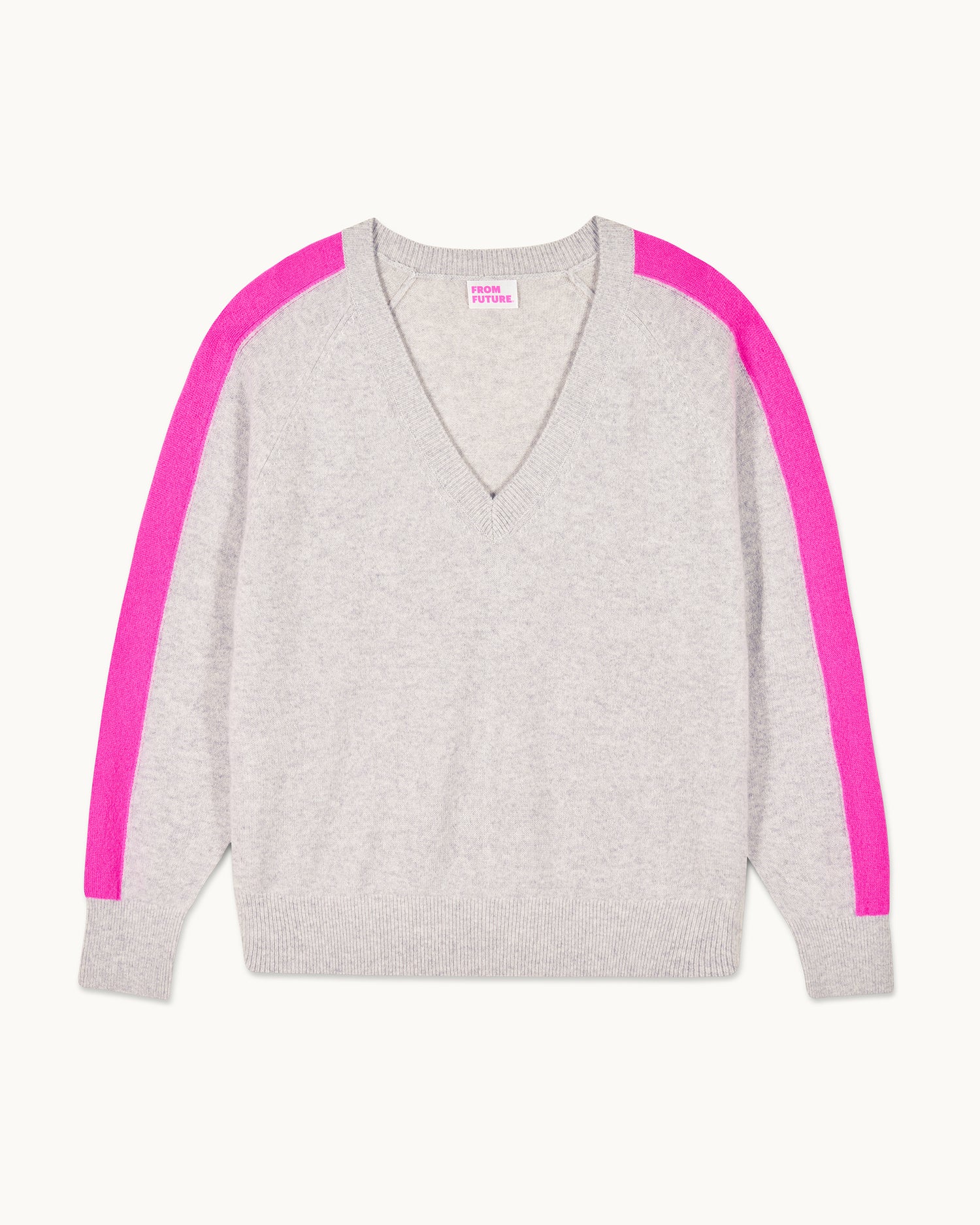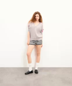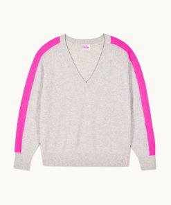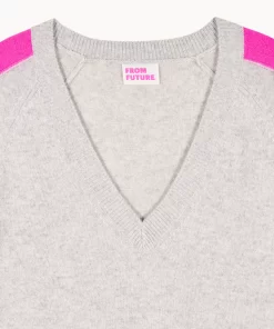 FROMFUTURE Pull Col V Oversize Bandes Gris Chiné Clair | Femme Pulls en cachemire