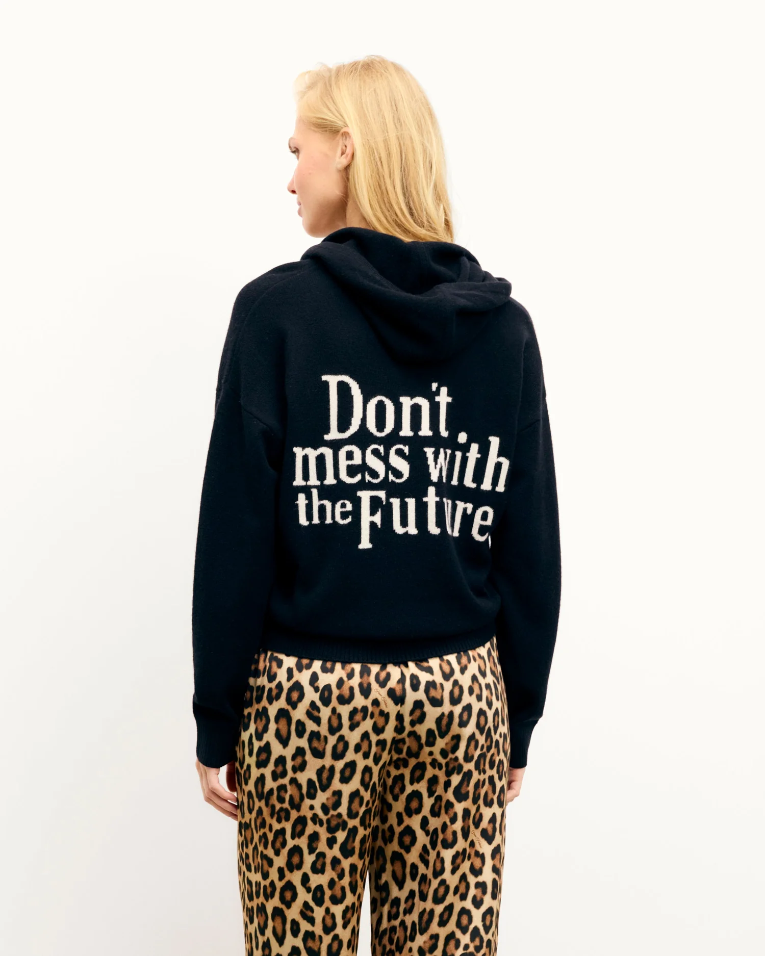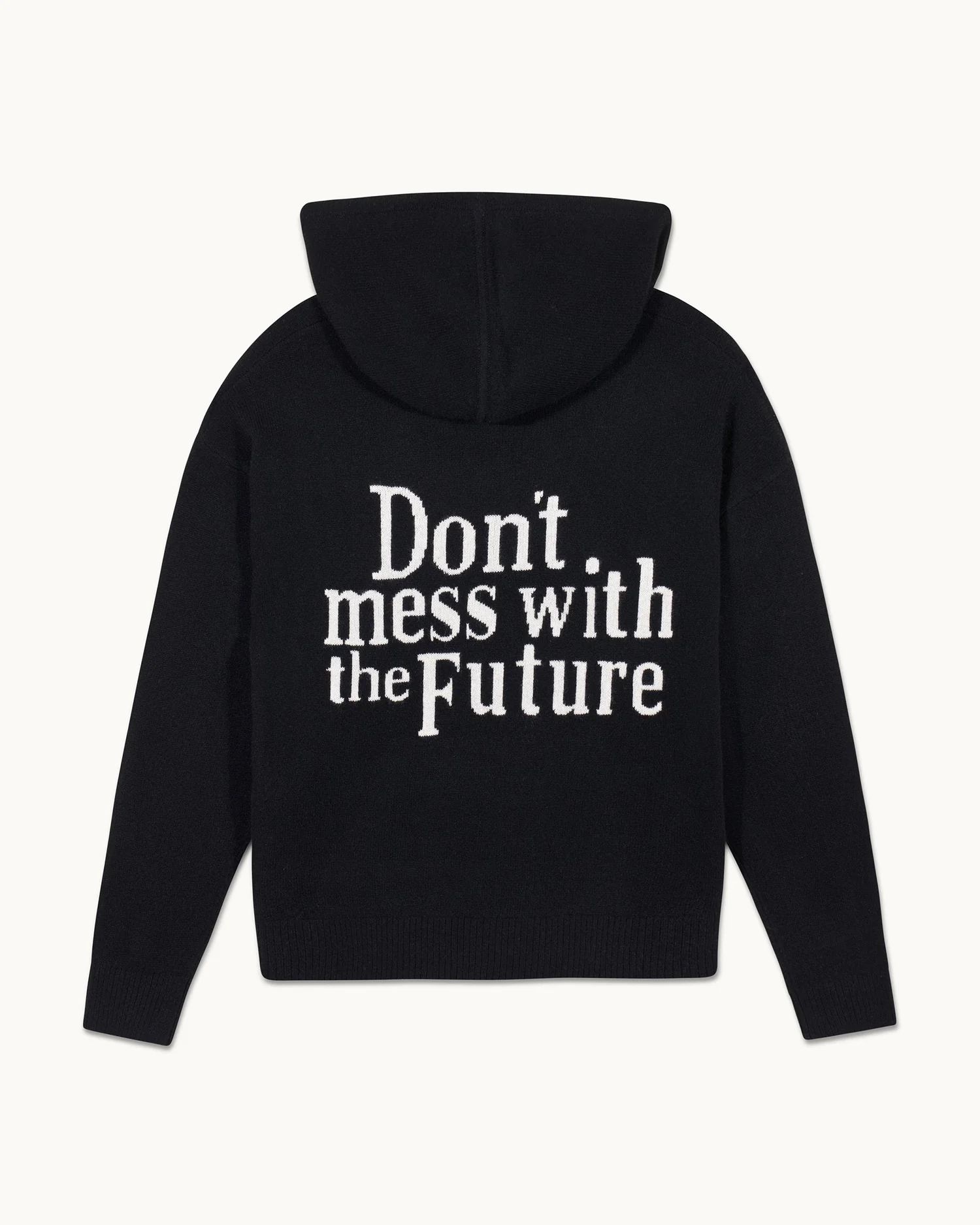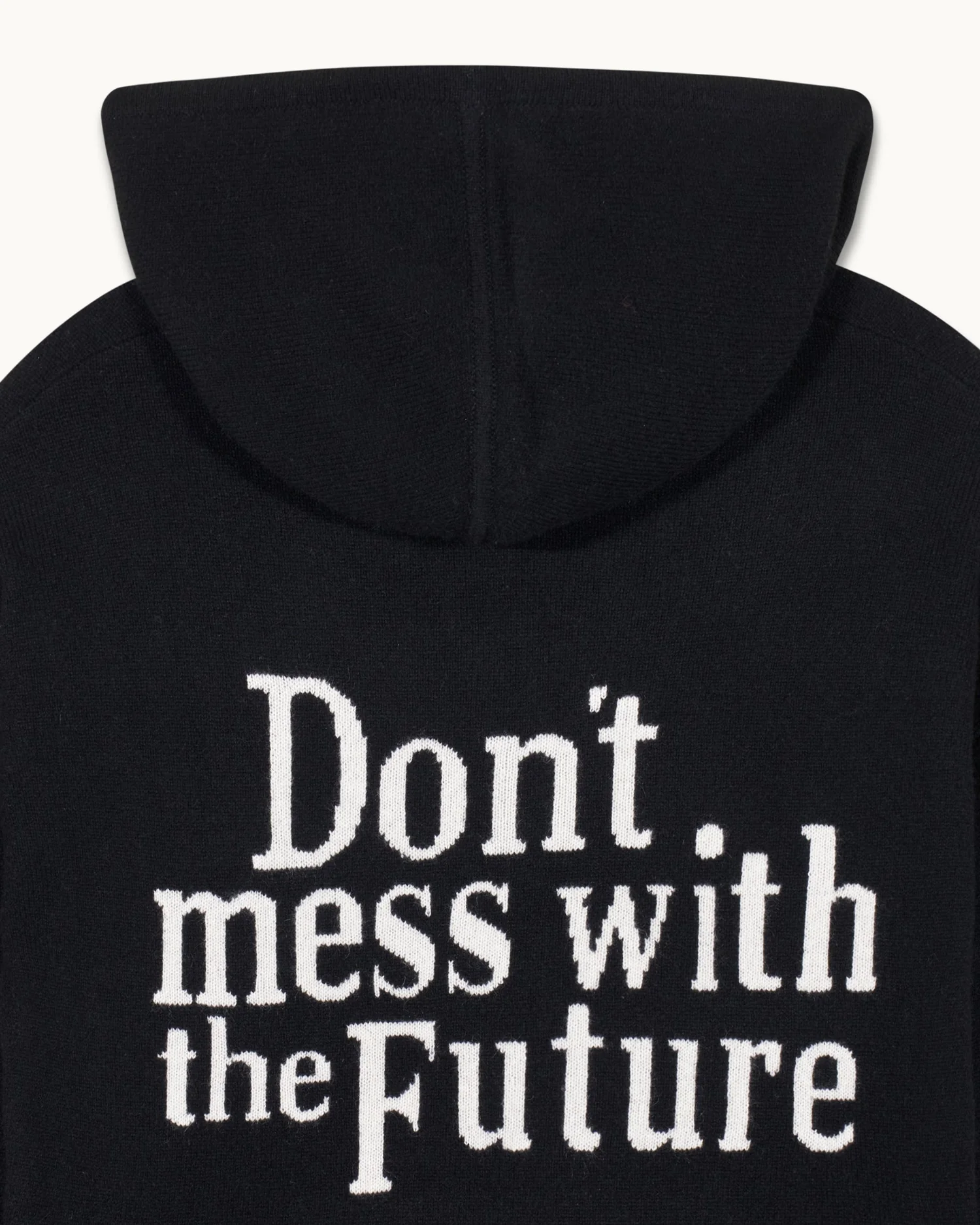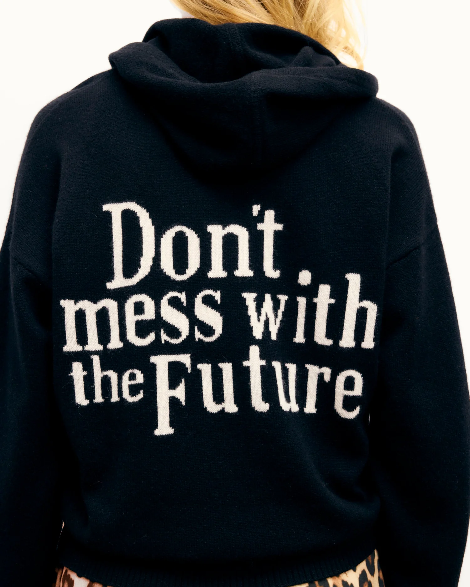 – Broderie intarsia « Don’t mess with the Future » au dos
