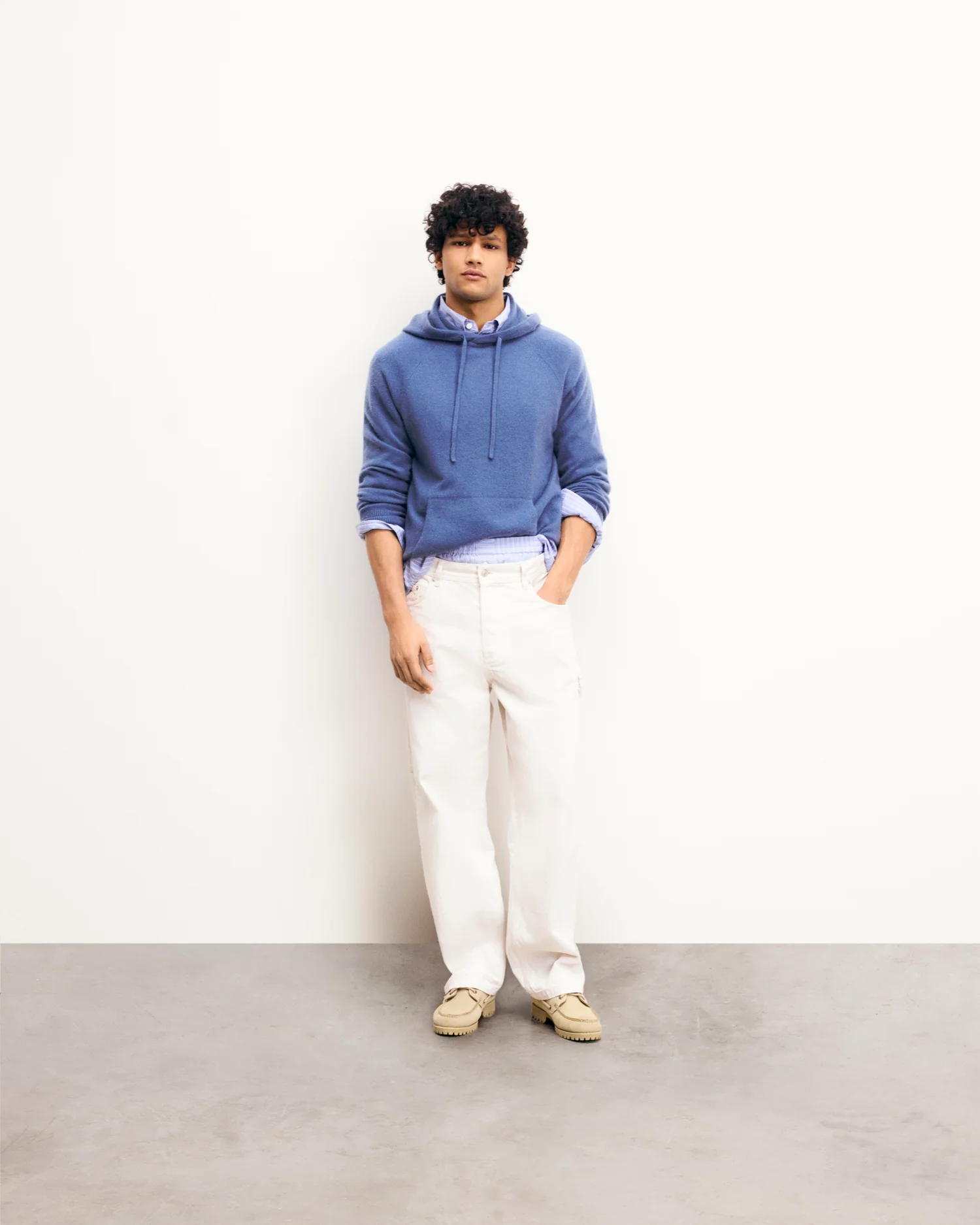Confectionné en cachemire 2 fils, ce pull hoodie s’impose comme un indispensable du vestiaire masculin. Il dévoile une capuche à cordons, une poche avant, des manches longues et des bords côtelés. Intemporel et versatile, mixez-le à un pantalon structuré ou un jean ample.