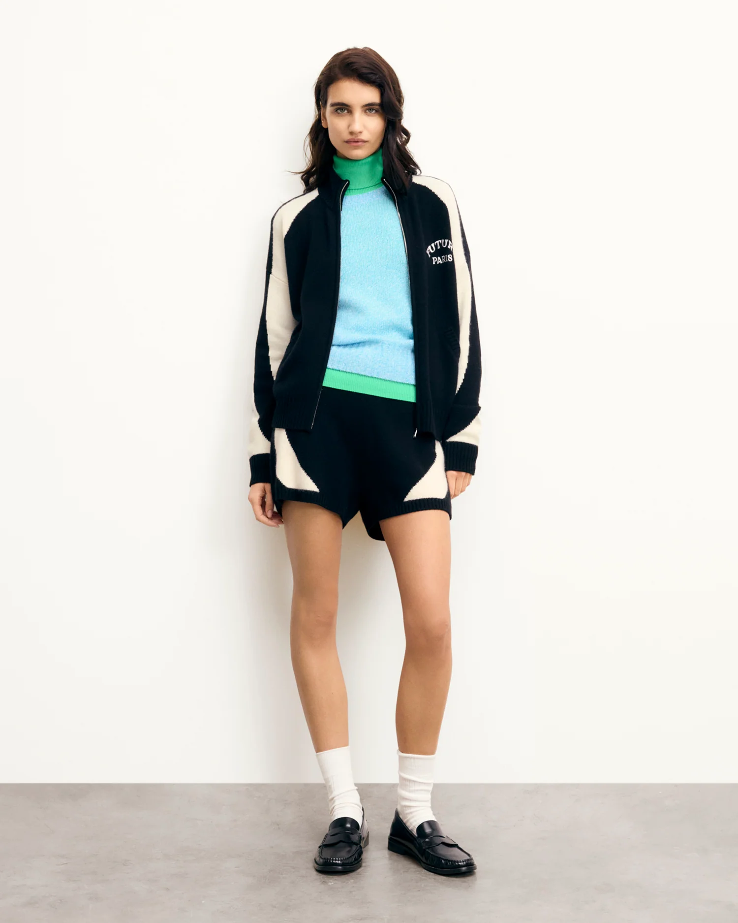 Avec ses lignes épurées et ses bandes contrastées, ce short sporty offre un twist audacieux. Confectionné en cachemire 4 fils, il est muni d’une taille élastiquée pour un ajustement parfait. Jouez le total look bicolore avec le pull gilet coordonné.