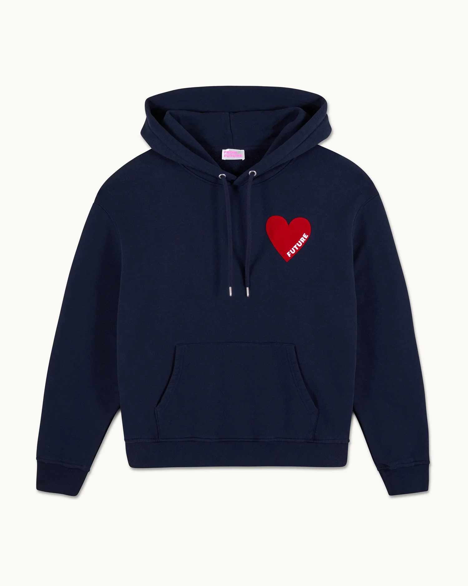 Muni d’une capuche à cordons, d’une poche avant et de manches longues, ce sweatshirt hoodie en coton dévoile un cœur floqué « FUTURE » sur la poitrine.