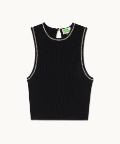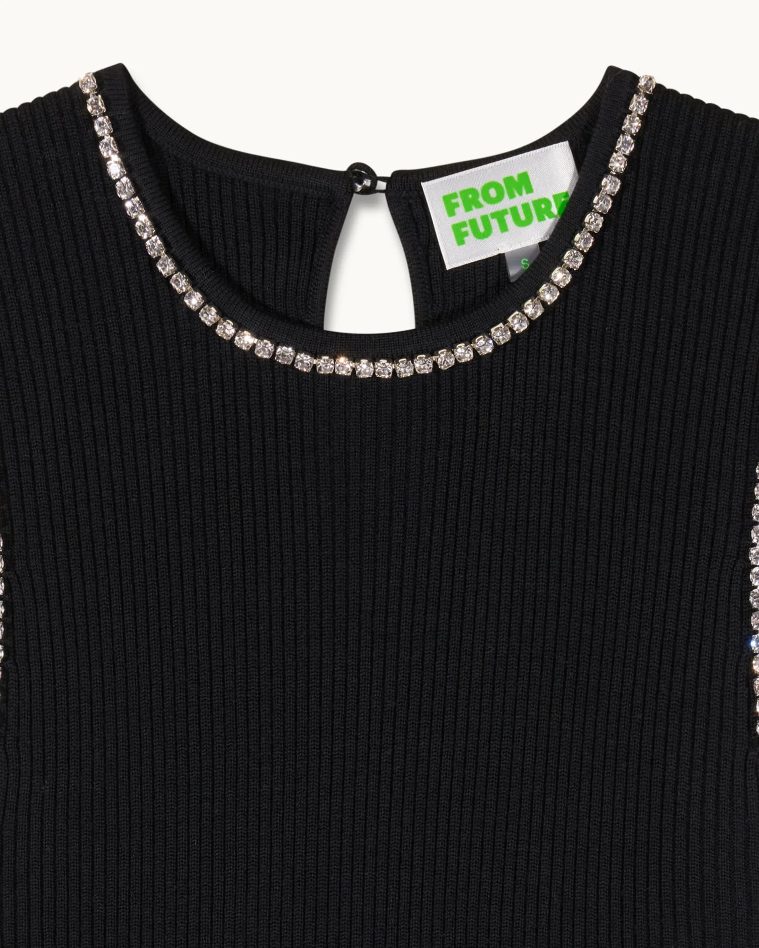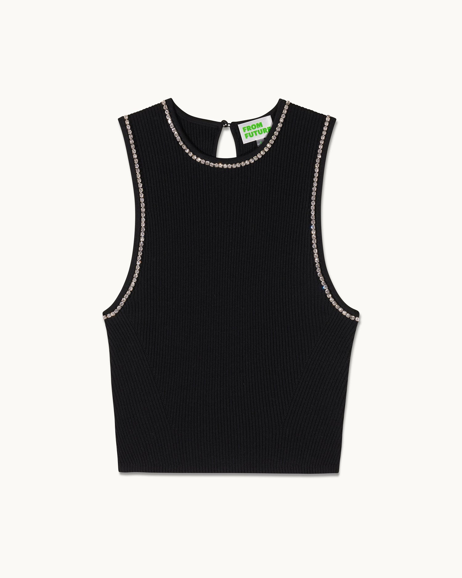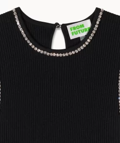 FROMFUTURE Top Débardeur Col Strass Noir | Femme Mailles d’été